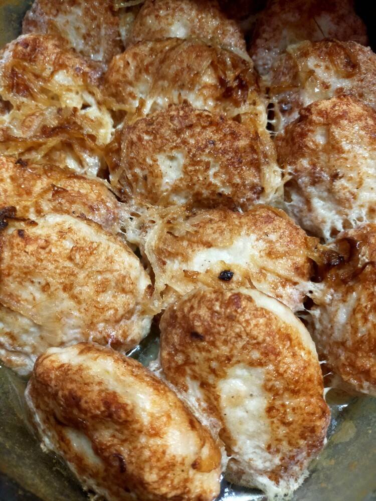 Ингредиенты: куриного филе, яйца, манки, большая луковица, специи , молока Способ приготовления: Перемолоть филе и лук. Добавить яйца, специи и манку и дать постоять минут 10. Далее на большом огне обжариваем наши котлеты до золотой корочки. И выкладываем в форму для запекания. Остатки масла на котором обжариваем наливаем к котлетам и заливаем поверх молоком. Накрываем форму фольгой и ставим в разогретую духовку 180с примерно на 35 минут. Приятного аппетита.
