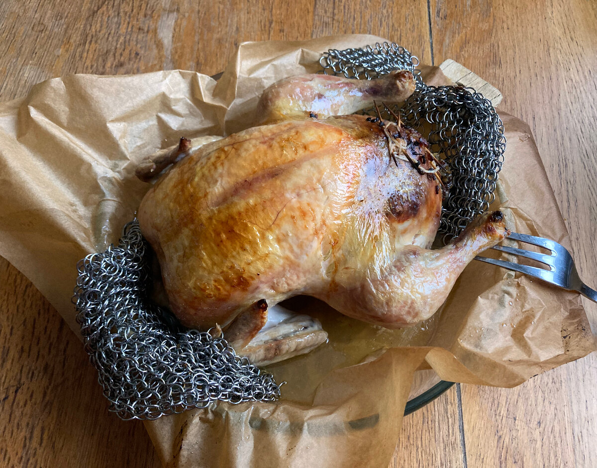 Запеченая курица, фаршированная булгуром и грибами. Тестирую кольчугу для запекания