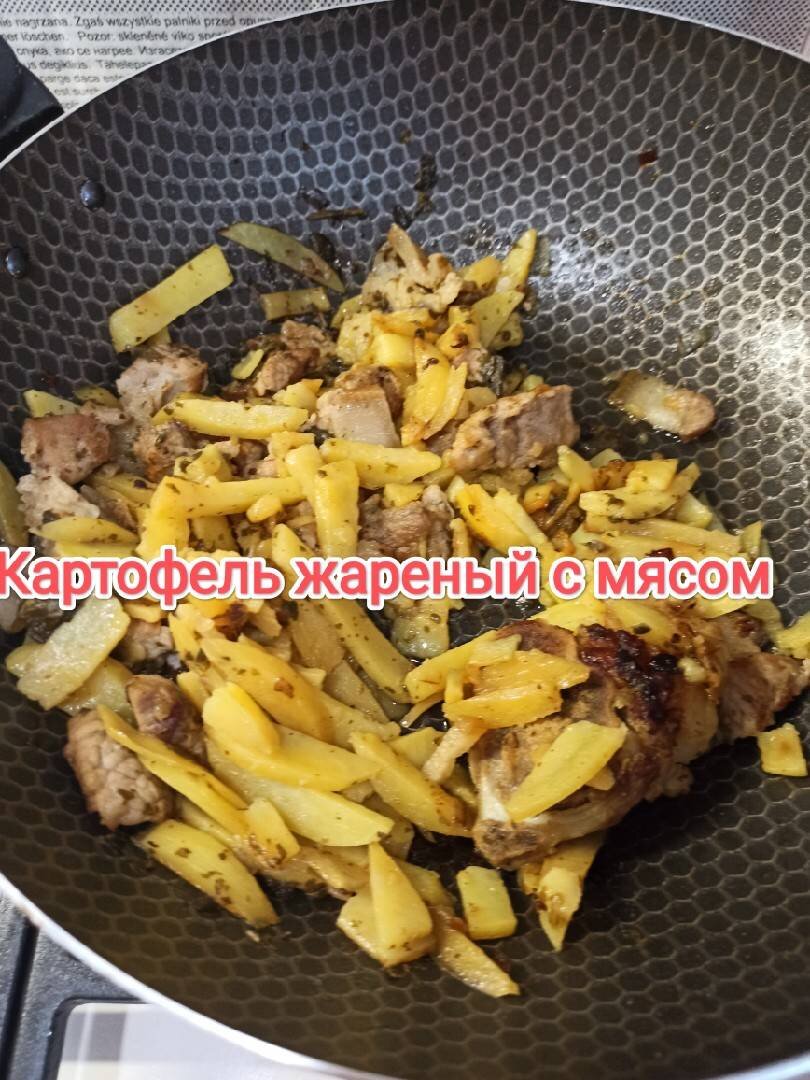 Благодарю за вдохновение автора @tasha77 Просто и быстро. #быстро Ингредиенты: Мясо, Картофель, Луковица, Соль и перец, Масло для жарки Способ приготовления: Мясо нарезать кубиками и обжарить на топлёном масле. Лук нашинковать. Добавить к мясу. Картофель нарезать и промыть. Обсушить бумажным полотенцем. Добавить к мясу. Жарить до готовности картофеля. Посолить и поперчить.