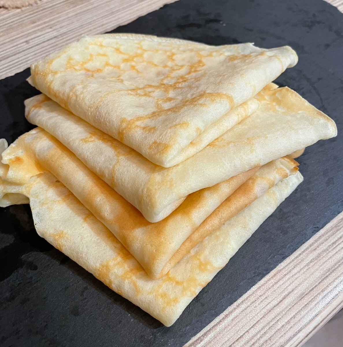 Сегодня готовим блины на молоке. Мне они нравятся как с разными начинками, так и просто со сметаной или вареньем. Если же у вас нет молока, а есть кефир, то можно использовать кефир вместо молока. Для приготовления нам понадобятся следующие ингредиенты: Приступим к приготовлению Шаг 1. В Отдельной миске взбиваем яйца, добавляем половину молока, соль, сахар и хорошо перемешиваем. Я взбиваю миксером. Шаг 2. В получившуюся смесь добавляем просеянную муку. Шаг 3. Все хорошо перемешиваем, чтобы не было комочков. К получившейся смеси постепенно добавляем оставшееся молоко. Перемешиваем. Консистенция теста должна быть как у жирный сливок, тесто должно быть жидким, но при этом не должно быть как вода. Шаг 4. Хорошо разогретую сковороду смазать кусочком масла. Наклоняем сковороду и начинаем выливать тесто. Чтобы тесто равномерным тонким слоем покрыло всю сковороду, нужно очень быстро вращать ее по кругу. Шаг 5. Выливаем тесто на сковороду и жарим до тех пор, пока он не приобретёт золот