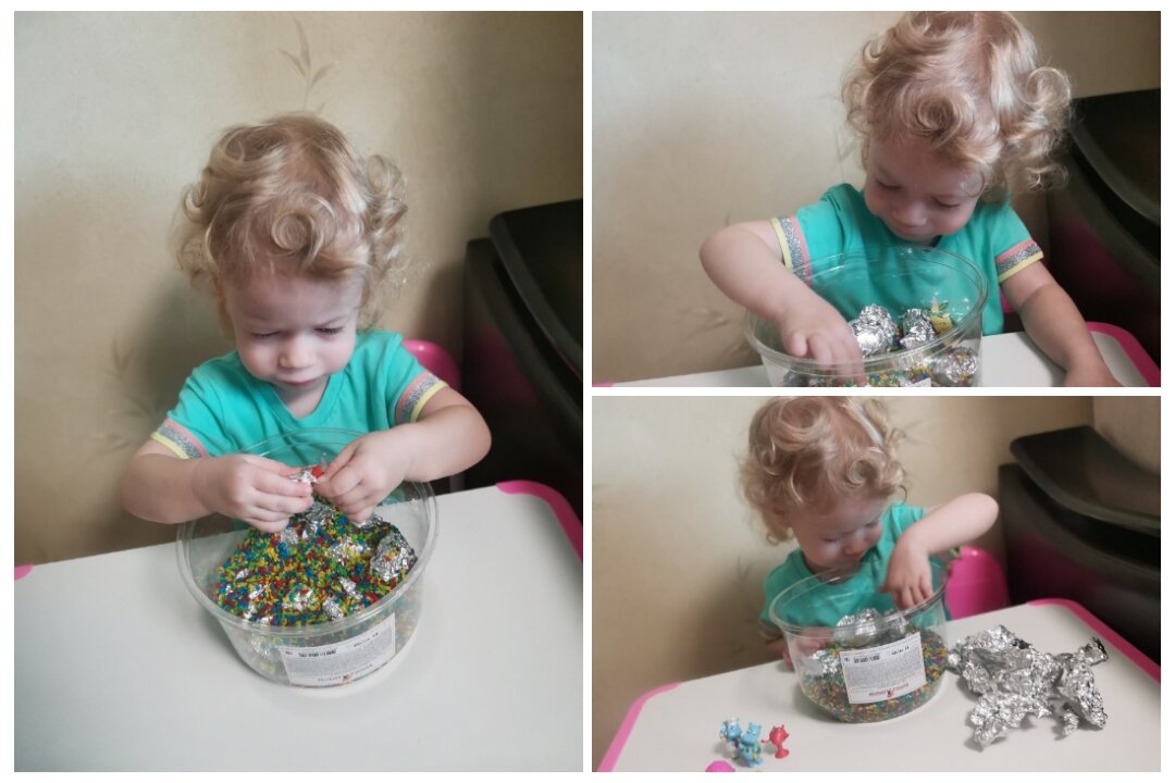 Знаю что детям нравится копошится в чём-то, но моей больше понравился цветной рис. Помню мы готовились к Пасхе и я решила покрасить яйца в рисе, чтобы они были необычной окраски. Жалко было выбрасывать цветной рис и я решила оставить для наших занятий с дочкой. Получился настолько красивый и яркий рис. Положила в коробку и назвала "Коробка сокровищ". В первый раз дочка играла с нашим цветным рисом. Затем, салют из риса - дочка в восторге!(но надо набраться терпения, потому что мусора много после него 😂). НО, я нашла хороший вариант, при котором ребёнок может сидеть 30-40 минут в тишине и разноцветный рис просыпаться будет мало 😂В цветном рисе дочка искала клад (мелкие игрушки в фольге) и ей очень понравилось, что она просила ещё-ещё. Так что это очень интересно! Мамочки и папочки, развиваем мелкую моторику рук для своих детей - это очень полезно!