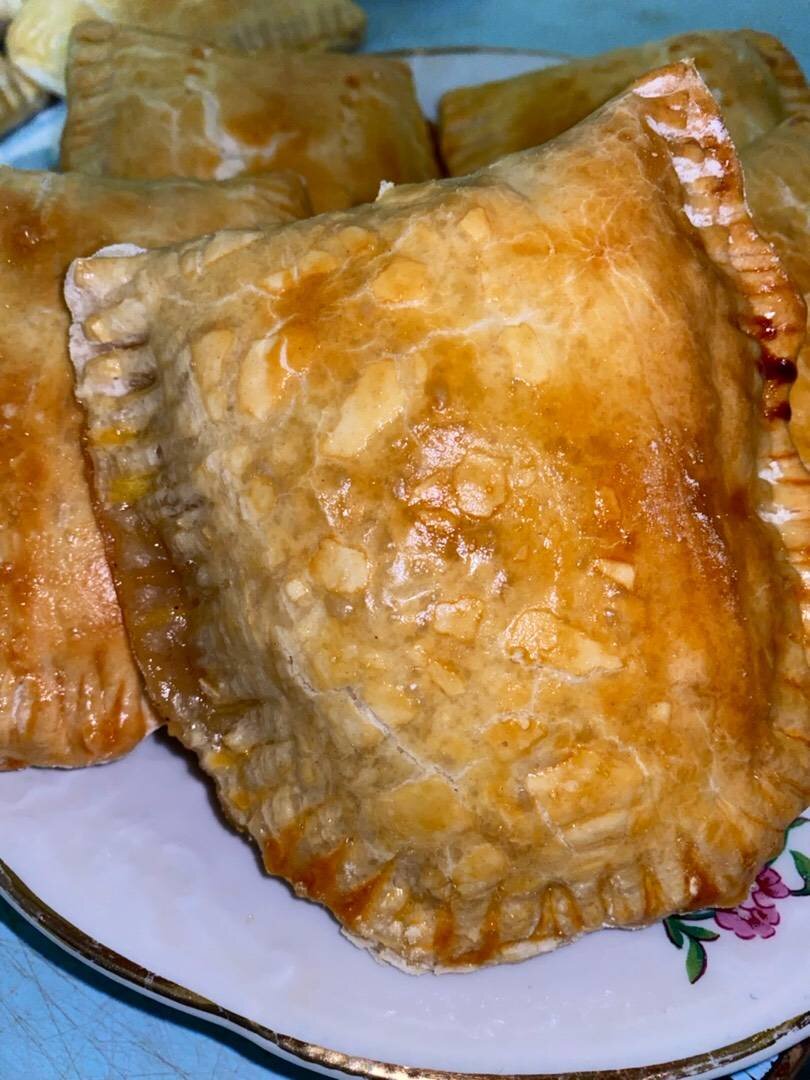 #канікули Ингредиенты: бездрожжевого слоеного теста, яйцо 🥚, Начинка, сахара, яблок, творога, изюма, Ванилин, 🥄 корицы Способ приготовления: Замороженная тесто оставить на пару часов для разморозки. Разрезать листовое тесто на 10 одинаковых частей и раскатать. Начинка: Очистить и измельчить яблоки 🍎, посыпать двумя столовыми ложками сахара и чайной ложкой корицы. Начинка: Творог хорошо растереть двумя ложками сахара, добавить изюм и хорошо размешать. Наполняем лепёшки начинкой и защипываем при помощи вилки. Смазать сочники яйцом и выпекать при температуре 180° 25 минут. Приятного аппетита 😋
