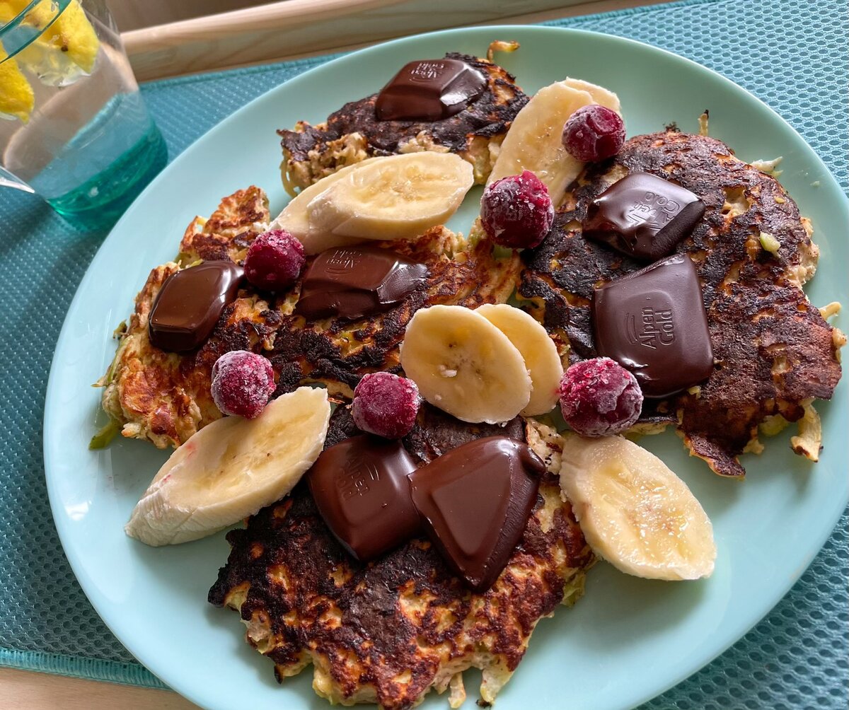 Яблочные панкейки Яблоки натереть на терке, добавить все ингредиенты, перемешать до однородности. Жарить на маленьком огне, с каплей масла, как маленькие оладушки. Когда перевернули на другую сторону, кладём по дольке шоколада сверху панкейков, она как раз хорошо растопиться Шоколадный брауни Банан размять вилкой, добавляем все ингредиенты, перемешиваем, выкладываем в формочку любую (важно чтобы не до краев было заполнено, иначе вылезет) и добавляем внутрь шоколад В микроволновку или духовку на 2-3 минуты Сырники с шоколадом Смешиваем все ингредиенты, внутрь сырника кладём кусочек шоколада, делаем шайбочку, чтобы шоколад был полностью закрыт. Обжариваем с каплей масла, на маленьком огне. Классный вариант запечь в духовке Рулет с маком/вишней Если выбрали мак, то предварительно заливаем немного кипятком, добавляем сахзам и отправляем в микроволновку на 3 минуты. Лишнюю жидкость сливаем. Добавляем творог, подсластитель, 1 яйцо и 1 белок (желток оставляем на промазывание рулета сверху). В