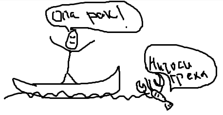 Однажды грека решил отомстить раку, который в детстве цапнул его за палец. Шрам на его пальце до сих пор напоминает ему о той кровавой бойне, холодок бежал по коже и страх охватывал его. Парень понял, что больше не хочет мериться с этим и очистит свое имя от такого позора. Он вышел к лодке, но тут дед окликнул его, медленно подошел, настолько медленно, что сама суть времени уже не имела значения, и подойдя он сказал парню: " Запомни месть - не выход, она не даст тебе душевного покоя, если твои руки будут запятнаны, обратного пути уже не будет, готов ли ты взять на себя такую ответственность?". "Да, я готов к этому. Шрам слишком глубок и он - вечное напоминание моей слабости. Не бойся, дед, я все эти годы тренировался и оттачивал свое мастерство, если я погибну, то так тому и быть, лучше умереть в бою, чем всю жизнь жить с чувством сожаления и быть трусом" - сказал очень резко паренек, да так резко, что у деда прорезался слух. " Что ж, вижу тебя не отговорить, поэтому раз ты решился на