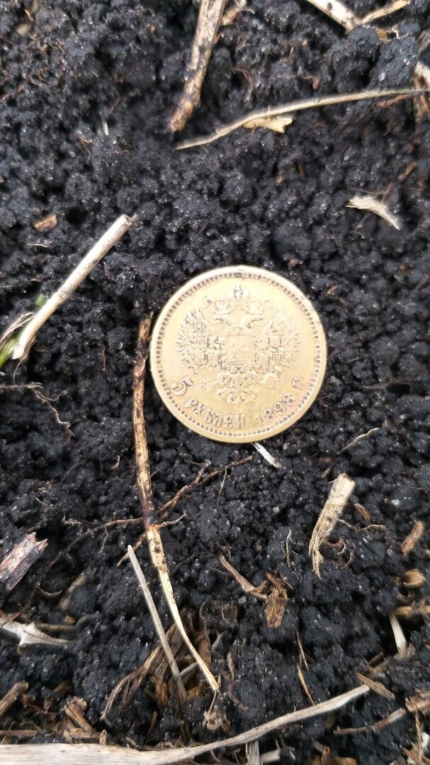 Приветствую друзья. Однажды весной пошли мы с дядей в заброшенный огород , в давние времена на этом месте стоял постоялый двор , находился он на сибирском тракте.Дядька мой так же как и я любитель приборного поиска . На тот момент у него был металлоискатель Фишер 22 с ДД катушкой , у меня терочка 505. Сразу же скажу что места там битые перебитые и поэтому мы решили копать все сигналы . Я облюбовал место где стояла сухая прошлогодняя крапива . И мне начало фартить . Находки выскакивали одна за одной , на фото выше все кроме золотой накопал я. Дядьке тем временем попадались только гвозди и всякий шмурдяк . И вдруг выкапывая очередной осколок чугунка он увидел глазами блестящую монету , она спряталась под кусочкам чугунка . Вот почему нужно копать всё когда прочёсываешь битые места , да и не только. Он конечно подумал что это ранняя советская монета 2 копейки ,но взяв её в руки увидел что это 5 рублей Николая 2 . Он меня спокойно позвал : Лёха , я нашёл её . И я сразу же понял о чём идёт