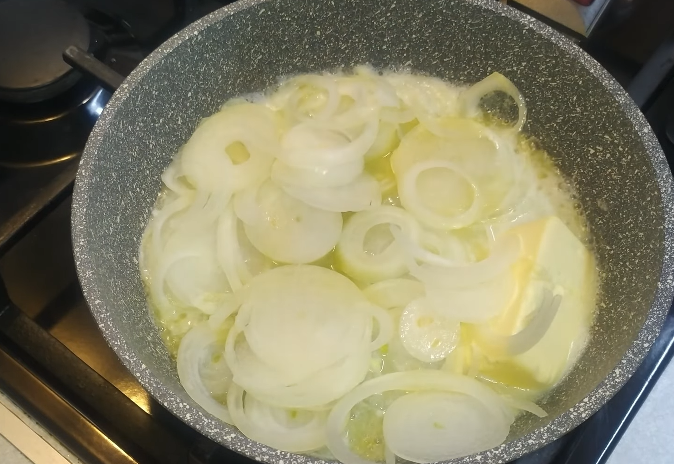Всем привет, дорогие читатели. Сегодня мы будем с Вами готовить Картошку с луком по-Французски. Приступим. Нам понадобится: 1. Первым делом, растопите сливочное масло и добавьте к нему лук. 2. Сразу же добавляем кусочки отварного мяса 3. Обжарьте все слегка, чтобы масло приняло золотистый цвет. 4. Добавьте 3 ст.л. муки и все перемешайте. Сразу скажу, таким образом мы готовим соус. 5. Как только все перемешали, добавьте мясной бульон, накройте крышкой и тушите 10 минут на слабом огне. 6. Отварите картошку в посоленной воде. Отваренную картошку разрежьте на четвертинки. 7. Картошку добавляем к нашему соусу. и все тщательно перемешиваем 8. Посолите (1 ч.л.) и поперчите (0.5 ч.л.). Так же перемешайте. 9. После того, как перемешали, накройте крышкой и тушите на слабом огне 5 минут. 10. Блюдо готово, можно сервировать. Для сервировки я использовал твердый сыр и зелень. Всем приятного аппетита, дорогие читатели!) Еще больше видео на YouTube канале SERGO PUDRA (нажмите на эту надпись)