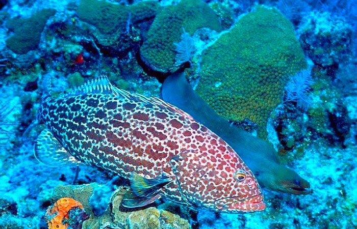 Помните картину Перова «Охотники на привале»? Троица удачливых охотников хвастается добытыми трофеями и делится всякими историями, правдоподобными и не очень. Рыбы, обладай они умением рисовать, тоже могли бы создать подобную картину. Учёные недавно обнаружили, что некоторые рыбьи хищники, а конкретно – групер, губан и мурена - обожают охотиться вместе. При этом отношения у них между собой крайне миролюбивые, нападение на партнёра по охоте ни разу замечено не было. Но самое интересное не это – про их сотрудничество было известно давно, однако то, что они между собой ещё и «беседуют» - стало сюрпризом. Факт общения был зафиксирован в ходе исследований, организованных учёными всех европейских университетов совместно со специалистами национального парка Египта. За всё время удалось отснять более трёхсот часов охоты партнёров. Обычно действо происходило так: коралловый групер (он же коралловый лосось), охоту начинает в одиночку. Но обед иногда умудряется удрать в коралловые заросли, откуда
