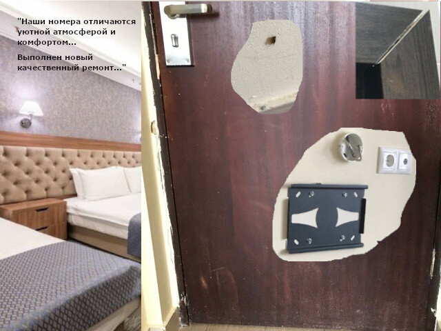 Затем выяснилось, что телевизор в другой комнате то имеет большие проблемы с изображением, то сигнал в нём отсутствует вовсе… И вообще, сложилось впечатление, что в номере попытались сделать косметический ремонт, но попытка эта не задалась.