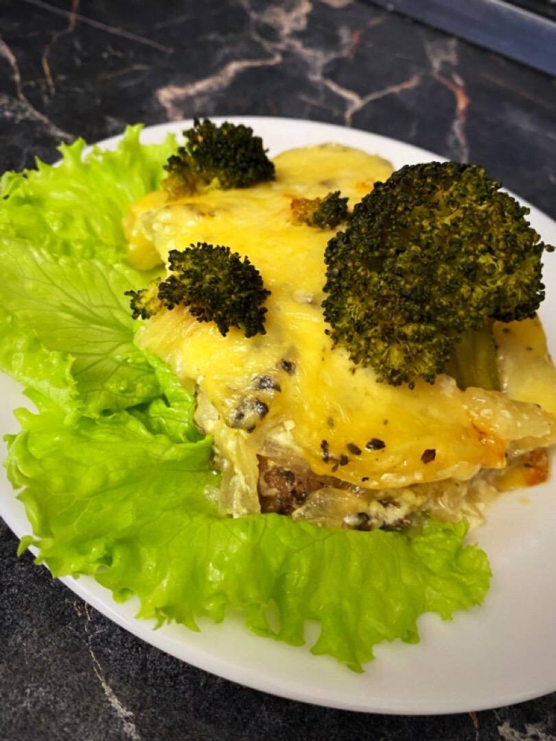 О вкуснейшее из блюд… радует глаз и желудок раскрываясь в каком кусочке… Хочу поздравить от всех своих вкусовых рецепторов пользователей приложения и пожелать вам самых лучших блюд на вашем столе! #кукпад4 #мясопофранцузски Ингредиенты: свинины, гранатового соуса, картофель, лук, сыра, Майонез, Соль, перец базилик , брокколи Способ приготовления: Мясо порезать тонкими пластами и отбить. Замариновать минимум на 30 минут в гранатовом соусе с добавление соли, перца, базилика. Все хорошо перемешать. Выкладываем мясо в форму сверху покрываем луком (полукольцами), смазываем майонезом, следующий слой картошка тонко порезанная кружками. Солим, перчим. Отправляем в разогретую духовку на 30 минут при 180 градусах. Затем добавляем тертый сыр и брокколи и снова в духовку на 10 минут. Приятного аппетита 😋