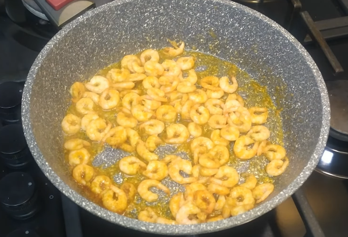 Сегодня мы будем готовить с Вами морепродукты, а именно - креветки в сливочном соусе. Без лишних слов, я думаю это и так вкусно звучит, поэтому всем советую приготовить. Нам понадобится: 1. Смажьте сковороду оливковым маслом (50 грамм) и добавьте на нее креветки. Обжариваем с двух сторон на сильном огне 5 минут. Добавляем гранулированный чеснок (1 ч.л.), паприку (1 ч.л.), соль (1 ч.л.), и все тщательно перемешиваем 2. Добавьте 100 мл. сливок и натрите 100 грамм сыра. 3. Так же я добавляю щепотку укропа. Все тщательно вымешиваем до однородной массы 1-2 минуты. 4. Когда блюдо приготовится, накладываем его в глубокую тарелку. Я сервирую его с петрушкой. Выглядит красиво и вкусно! Всем приятного аппетита !:) Еще больше рецептов на YouTube канале SERGO PUDRA (нажмите здесь)