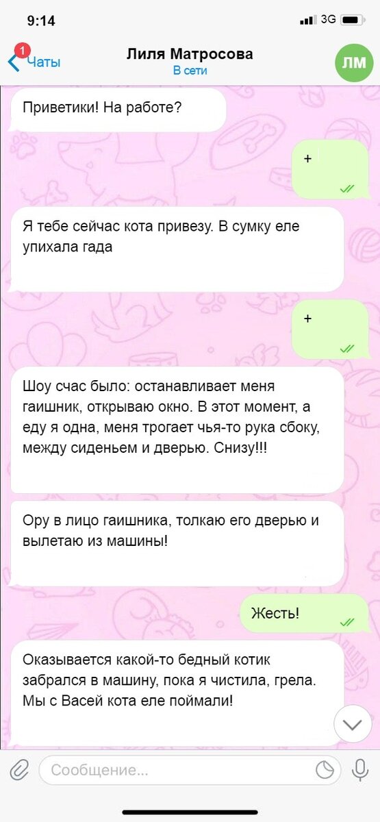 Коты, они такие... коты. Свои эпитеты можете вставить вместо многоточия сами! Эти милые животные то в фурию с когтями-лезвиями на всех четырех лапах превратятся (куда там Россомахе), то в безумное веселье впадут, бегая чуть ли не по потолку, то "ищешь-ищешь не найдешь" их по дому... Но абсолютно точно - любая кошка полна неожиданностей. Поскольку у этих мохнатых разбойников карманов не найдено, значит все свои "кошачьи стимуляторы приключений на ... хвост" они вырабатывают! Вот это организм! А, заодно, своими проделками стимулируют неожиданный выброс адреналина (и не только) у нас, у людей. Сегодня переписки как раз об этом, о неожиданных случаях с котами. Кстати кота тоже назвали Васей, в честь доблестного инспектора. Который не только не обиделся, когда его дверью машины орущая девушка чуть не сбила, но и с удовольствием стал принимать участие в жизни этой девушки! И кота) Еще одна переписка. И опять про кота. Если у Вас дома кошка или кот, не стоит удивляться ничему... Хотя я сама н