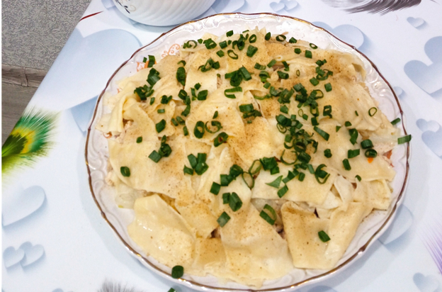 Всем привет. Многим известно такое блюдо как бешбармак. Издавно считают, что это одно из основных блюд казахстанской кухни. Но вопреки всему, каждый народ делает теперь данный продукт по-своему рецепту. Вообще бешбармак готовиться из свинины. Но кулинары начали творческо подходить к приготовлению этого блюда, и добавлять разные продукты питания или заменять, те по которым готовят казахи,тем самым получается у каждого по-разному, но вкус у всех просто уникальный. Мною было попробовано много вариантов приготовления бешбармака, все они отличаются какими-то вкусовыми качествами, так как добавляют разные продукты, но результат просто меня покорил, теперь я очень часто готовлю своей семье данное блюдо. Конечно, где-то это блюдо, например в Азии, готовят исключительно по праздникам или значимым событиям, у кого-то это традиция готовить на Новый год или Рождество. Многие как я- когда захотела, тогда приготовила, без повода. Как мне говорила бабушка( она в своем раннем детстве проживала в Каза