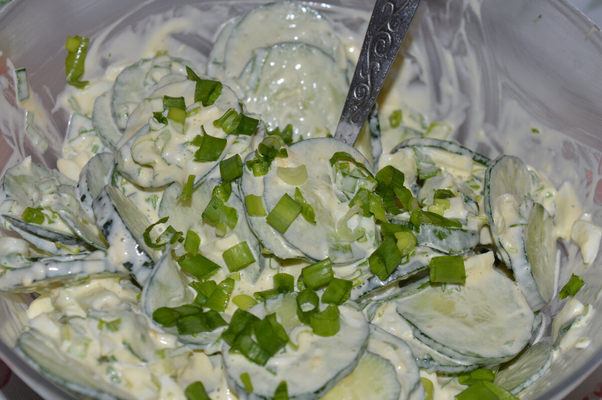 Вы помните это салат. Почему 8 марта, да потому-что первые свежие огурцы появлялись именно к мартовским праздникам. Это сейчас хочешь огурцы, а хочешь сладкий перец. Только деньги давай. Для аутентичности салата будем брать длинные огурцы. А еще пучок зеленого лука. Раньше мы выращивали его на окне. А теперь пошел такой лук, что и корней не дает. Видимо, обработанный чем-то. Покупной сейчас такой же злой, как и домашний. Ну а так все просто. Режем лук. Режем огурцы как любите. Мне нравится колечками. За это время на два длинных огурца и 100 грамм лука, варим два яйца вкрутую. Можно и три, если не крупные. Мелко режем остуженные яйца. Складываем все в салатник, Солим. Заправляем майонезом. Перемешиваем. Все. Получаем весну в январе. Как у 12 месяцев. Спасибо за прочтение. Удачи вам, здоровья и благополучия. Подписывайтесь, пожалуйста, на мой канал, где я рассказываю, как мы 0водим пчел на шести сотках в СНТ, огороде, заготовках и некоторых любимых рецептах. Спасибо. Для меня это оч