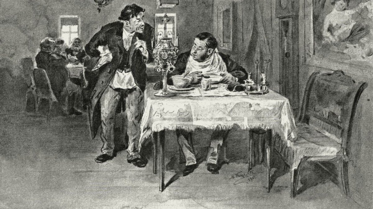 – Блеманже – это такое сладкое блюдо, которого ни тебе, ни тебе, мастеровщине немытой (Евстигнеев ткнул пальцем в Антошина и Фадейкина), не то что кушать, попробовать даже и то не придется. А я кушал. Теперь, скажем, — продолжал Евстигнеев, всё более и более распаляясь, – ели вы куриные котлеты, называются «де валяй»? Обратно, котлеты пожарские, котлеты марешаль, котлеты министерские, котлеты «Палкин», беф а-ля Строганов, салат «Оливье», салат провансаль, паштет страсбургский, осетрину паровую, осетрину жареную, осетрину заливную, севрюгу, балыки всякие, суп черепаховый, суп консоме, суп крем, икру паюсную, икру зернистую, икру китовую, которую кит мечет… Да вы даже названий таких не знаете и знать никогда не будете, и дети ваши знать не будут, и внуки, и правнуки. А я ел! В агромадном количестве ел. Иной раз уже и дышать нету никакой возможности, а ешь, давишься, через силу глотаешь. Хлопнешь для скользкости чарочку шампанского или, скажем, портвейнцу и снова ешь. А почему? Во-первых, ужасно как вкусно. Во-вторых, – даровое, понятно это вам, серое вы мужичье, да-ро-во-е!.. Всё непокупное, все даровое! Сколько на столе остается – все мое! Во!.. А вам до гробовой доски только и жрать что щи да кашу, кашу да щи, редьку с квасом да квас с редькой. Ну, и еще тюрю…