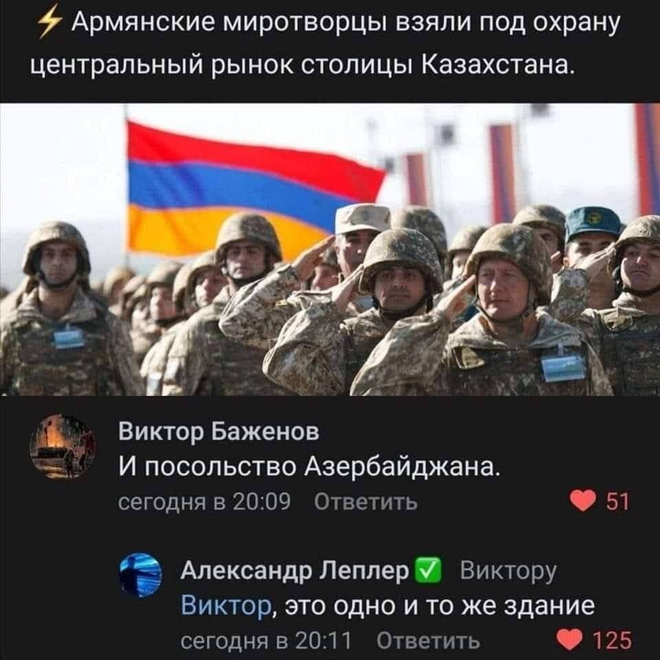 Барев дзэс, уважаемый! Ты, конечно, уже читал шутки про то, что 70 армянских миротворцев в составе сил ОДКБ в Казахстане будут отвечать (отвечали) за хаш и долма? Ара, э! Зря смеёшьси! Ведь когда-то #Армения была великой империей, которую боялись даже парфяне. Вот ты скажи мне па-братски, кто был истинный ариец (по своему собственному утверждению), но не #Гитлер? Характер южный. Женат на Клеопатре, но не Марк Антоний и даже не #Юлий_Цезарь? Правда, это не та #Клеопатра, а дочка Понтийского царя Митридата Евпатора. Но, слущий, какая разница?! Все они, Клеопатры, одинаковий, да? Кто переселял целые народы, но не #Сталин? Включая евреев. Не знаешь, да? А я тебе скажу — армянский царь Тигран II Великий! Но карьера у Тигры начиналась непросто. Юность свою он провёл у парфян в качестве заложника. Потом, когда ни то его батя, ни то дядя (царь Армении) умер, Тигран оплатил свою свободу пообещав парфянам 70 высокодоходных шашлычных. Ну в смысле, плодородных равнин. Его выпустили. А когда у сам