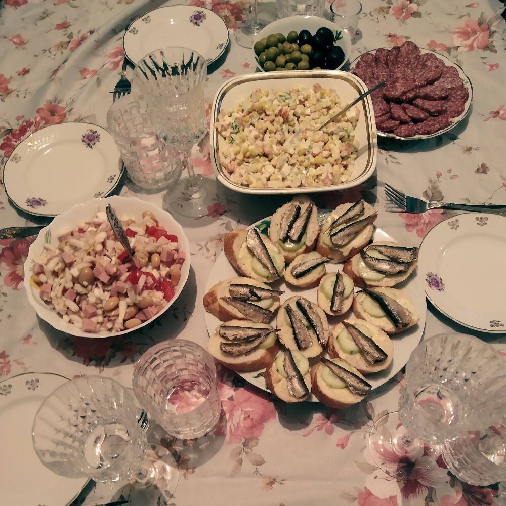 Очень вкусный и быстрый салат на праздничный стол Ингредиенты: Крабовые палочки , Консервированый ананас , Твердый сыр , яйца варёные, Майонез , Маслины без косточек или зерна граната для подачи Способ приготовления: Собираем салат: режем все кубиками. Добавляем майонез. Перемешиваем. Оформить кольцами маслин или зернами граната, зеленью. Перед подачей поставить салат на 30 мин. в холодильник.