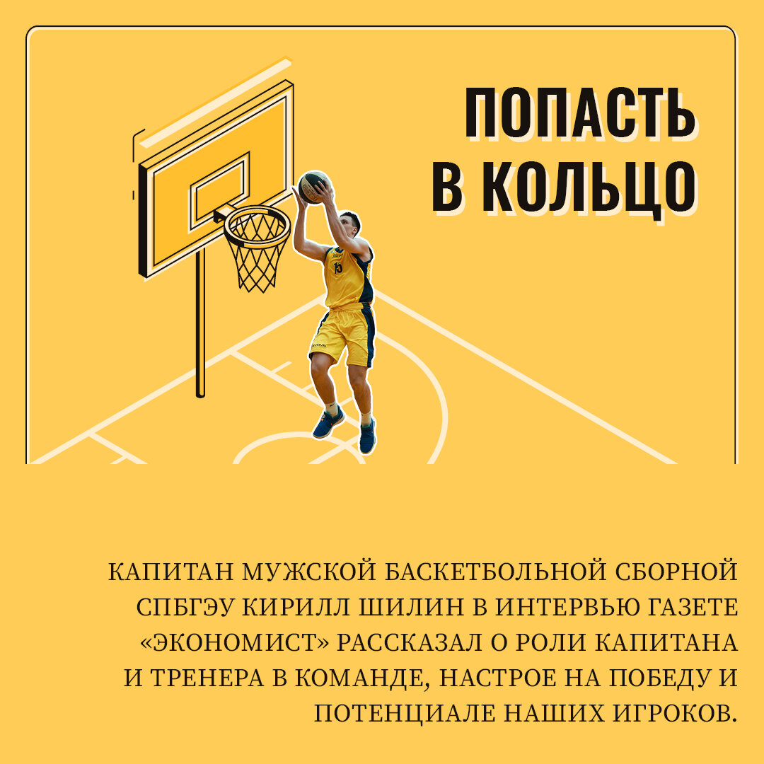 Капитан мужской баскетбольной сборной СПбГЭУ Кирилл Шилин в интервью газете «Экономист» рассказал о роли капитана и тренера в команде, настрое на победу и потенциале наших игроков.
