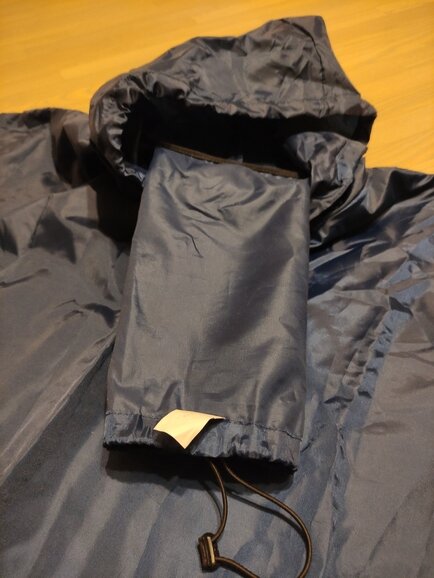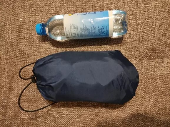 Давно хотел себе легкий большой плащ-дождевик на случай внезапной непогоды. Полиэтиленовые изделия #2, купленные на рынке или в электричке, уже точно привет из первобытной эпохи, но и высокотехнологичной непромокаемой куртки или целого костюма в гардеробе пока нет. Требовалось компактное решение, которое могло бы легко уместиться в маленьком рюкзаке, а по требованию – укрыть от непогоды почти в полный рост. Так пончо Kosadaka и стал моим выбором. Рассмотрим плащ в сложенном виде. Изделие представляет собой компактно сложенный сверток на резиновой затяжке с клипсой. Размер сравним с маленькой пластиковой бутылкой объемом 0.5 л., пончо без труда уместиться в вашем рыбацком рюкзаке на дне или в боком отделении. Такая удобная конфигурация становится возможной благодаря чехлу, который вшит в ворот со стороны спины изнутри. При сложении пончо Kosadaka аккуратно впихивается внутрь, чуть натягиваете чехол, затянули резинку и готово! Развернем. Вот тут возникает вопрос, который точно нужно п