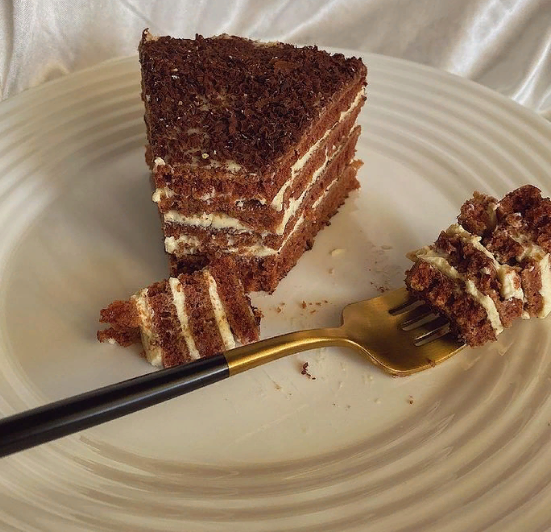Тесто: Готовим коржи, смешиваем все сухие ингредиенты ,добавляем яйца, молоко и масло ,все тщательно перемешать! После чего добавляем кипяток и замешиваем тесто. Консистенция должна быть чуть гуще ,чем на блины. На разогретой сковороде жарим с дух сторон по 2 минуты. Тесто наливать побольше, так коржи будут пышнее.
