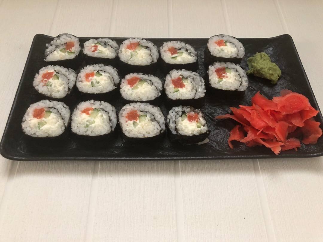 Модное веяние в виде суши и роллов, несмотря на кажущуюся сложность, можно легко приготовить самостоятельно. 👌 Ингредиенты: риса для суши, воды, слабосоленой форели, листов Нори, огурцов, сыра филадельфия, рисового уксуса, сахара, Соевый соус, васаби, имбирь Способ приготовления: Необходимое количество риса промыть холодной водой. Заливаем 350 ml воды и доводим до кипения. Ставим на большой огонь с закрытой крышкой, ждём пока дойдет до кипения, далее прикручиваем огне и засекаем минут 10. Выключаем, берем полотенце, и подкладываем под крышку (оно уберёт влагу) и оставляем ещё на 15 минут. Заправляем рисовым уксусом и сахаром. С помощью деревянной лопатки аккуратно перемешиваем. Даем ему немного остыть. Тем временем нарезаем рыбу тонкими длинными полосочками. Моем и просушиваем огурец. Нарезать его узкими брусочками. Нарезать сир Филадельфию толстыми длинными полосками и выложить на тарелку. Выложить на бамбуковый коврик нори, положив его вниз гладкой стороной. Рис выложить тонким слое