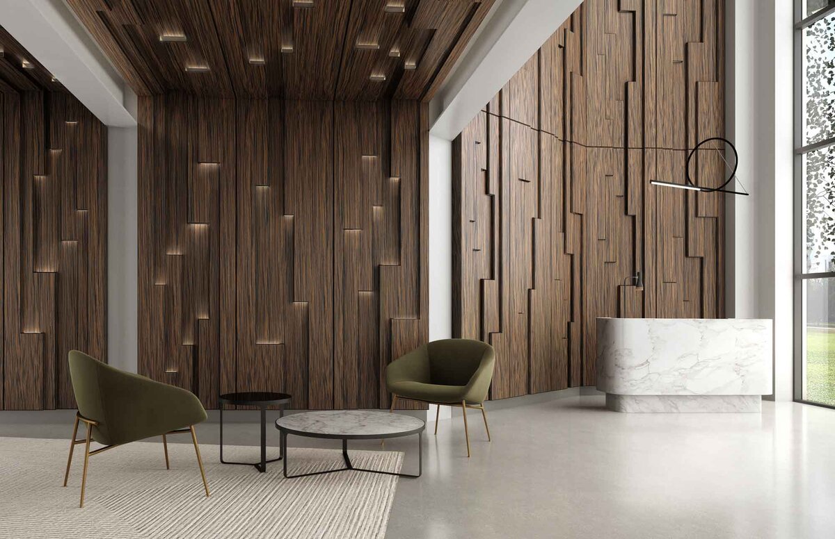 Гибкое дерево что это такое? Гибкое дерево – это плитки, состоящие из двух равносторонних треугольников, изготовленных из фанеры. Между ними помещена полимерная сетка и нейлоновое полотно. Плитка из фанеры обеспечивает прочность и жёсткость полотну, а подложка из нейлона и полимерной сетки придаёт материалу прекрасную гибкость. Такое дерево можно сгибать и придавать ему удивительные и необычные конфигурации. Благодаря эффекту морфинга, переходы получаются плавными и изящными, в результате, создаются новые архитектурные формы без углов и чётно выраженных граней. Конструкторы несколько лет пытались найти решение, которое позволит создавать из твёрдых и гибких материалов сложные конфигурации. В результате, получился продукт по характеристикам очень схожий с кожей, который может повторить форму любого основания. Уникальная структура позволит строителю в течение всего процесса быстро изменять рельеф. Технология производства Технология производства гибкого дерева представляет собой сложный