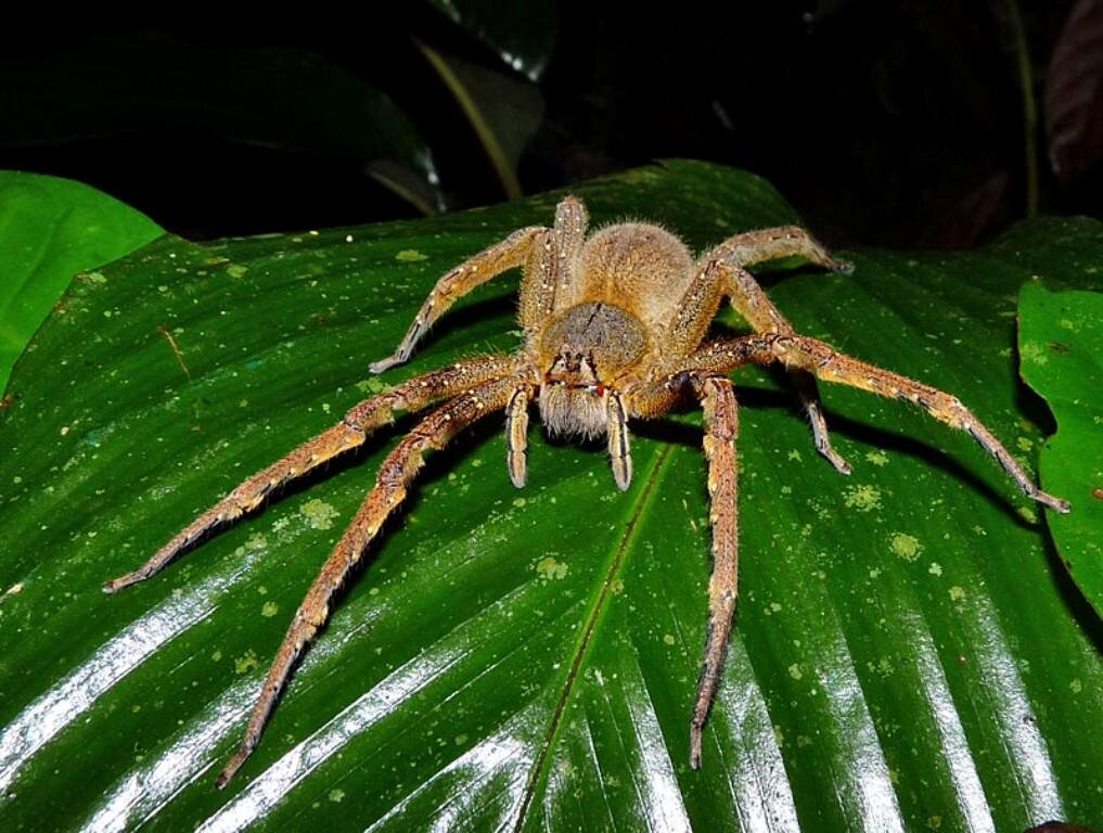 Бразильский странствующий паук, или банановый. Своё прозвище - банан он получил из-за особой любви к этим фруктам. Паук их не ест, а откладывает яйца, использует растения как временные укрытия.