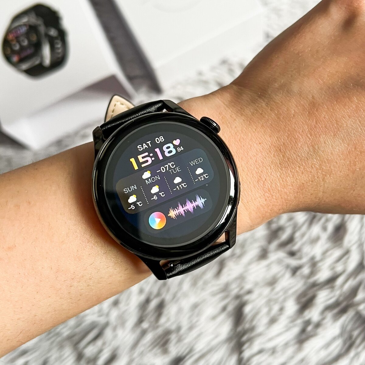 Смарт-часы стильного классического дизайна, с круглым экраном и ремешком из натуральной кожи. Заказывала на AliExpress в магазине LEMFO Direct Store. По ссылке в наличии 2 цвета корпуса и большой выбор сменных браслетов. Доставка длилась месяц. Трек номер отслеживался. Часы пришли в фирменной коробке. В комплекте к часам шла инструкция на английском и китайском и usb кабель для зарядки. Внимание: этот пост содержит рекламные ссылки (если их можно таковыми назвать). Вещь куплена мной на AliExpress, все фото мои, мнение о товаре тоже моё. Прямая ссылка на товар на AliExpress: https://aliclick.shop/r/c/1r5jz2jl6kuaxk39 Размер экрана: 1,28 дюйма. Экран полностью сенсорный. Часы сопрягаются с iOS и Android смартфонами через приложение Wearfit Pro. В приложении большой выбор циферблатов: бесплатных и платных. Часы могут работать 3-5 дней без подзарядки, в зависимости от количества звонков через них. Функции: измерение пройденных шагов, километров, сожжённых калорий, пульса, давления,