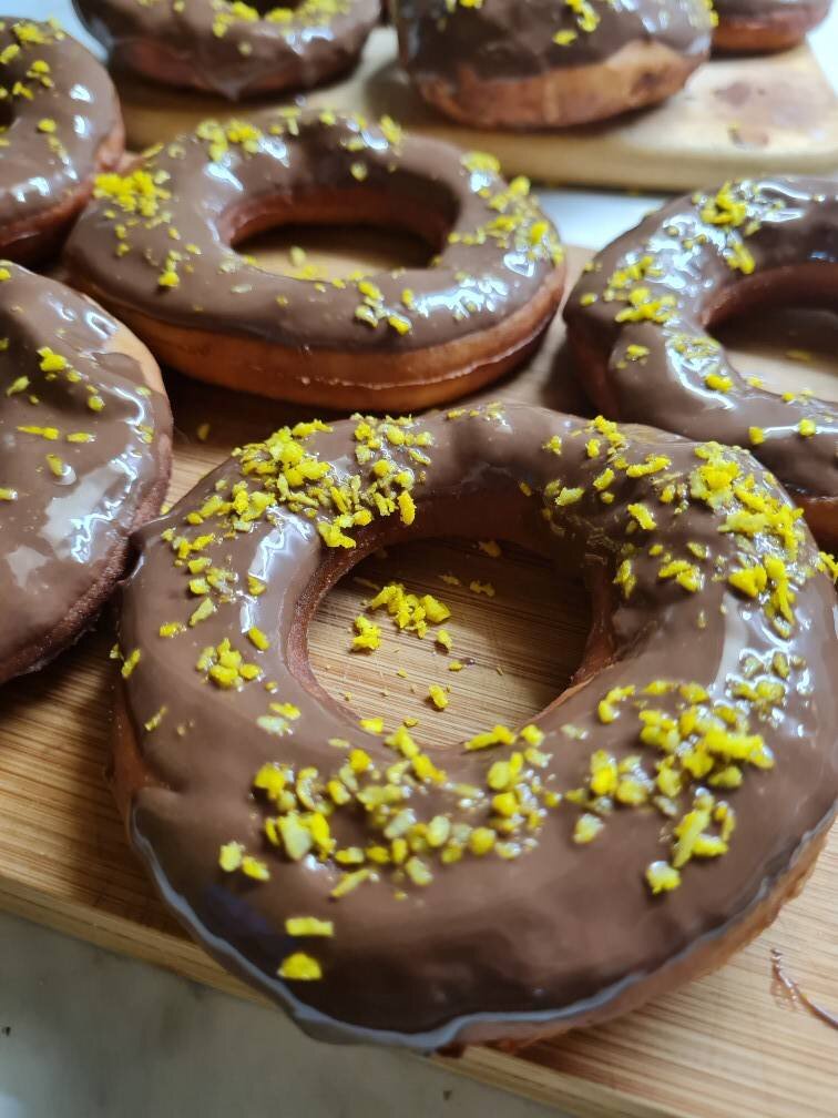 Ингредиенты: Мука, Молоко тёплое, Сливочное масло, Сахар, Яйцо, Дрожжи сухие, Соль, Ванилин, Раст. масло для жарки, Глазурь, Шоколад, Раст. масло, Любая посыпка (у меня кокосовая стружка) Способ приготовления: В миске смешать яйца + сахар + дрожжи + сливочное масло + молоко + соль + ванилин. Постепенно вводим муку. Замешиваем тесто. Готовое тесто убираем в тёплое место до поднятия. Тесто поднялось. Его нужно немного размять и разделить на две части для удобства. Затем раскатываем тесто в небольшой пласт примерно 2 мм. Вырезаем пончики. Сверху накрываем полотенцем, чтоб немного поднялись. В глубокую сковороду вливаем раст. масло. Хорошо разогреваем. Аккуратно берём пончики и обжариваем с двух сторон до золотистого цвета. Выкладываем на бумажные салфетки, чтоб лишнее масло стекло. Для глазури растапливаем шоколад + раст. масло на водяной бане. Когда пончики остынут обмакиваем каждый в шоколадной глазури и сверху посыпаем посыпкой. Приятного аппетита!! С нетерпением жду ваши фотоотзывы!🙂