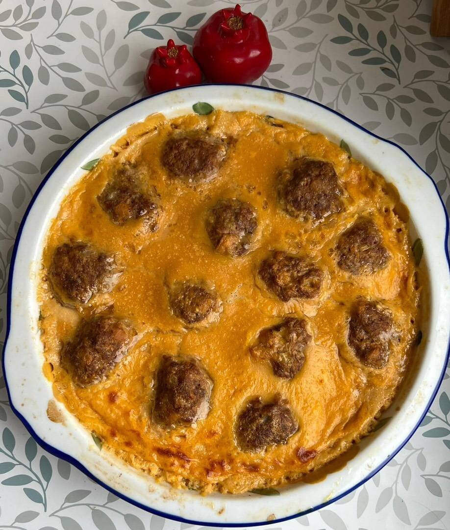 Ингредиенты: говяжьего фарша, луковица, тыквы, яйцо, муки, молока/сливок Способ приготовления: Тыкву нарезать кусочками. Добавить немного воды и тушить до мягкости при закрытой крышке (минут 10-15). Слить лишнюю жидкость. Пробить блендером. 1/2 часть соединить с фаршем и луком(нарезать кубиком). Посолить. Сформировать небольшие шарики и выложить в смазанную форму. Поставить в духовку минут на 15 при 180 гр. яйцо взбить со сливками, оставшейся тыквой и мукой. Посолить. Достать тефтели и залить этой смесью. Ставим в духовку ещё минут на 20. Приятного аппетита!