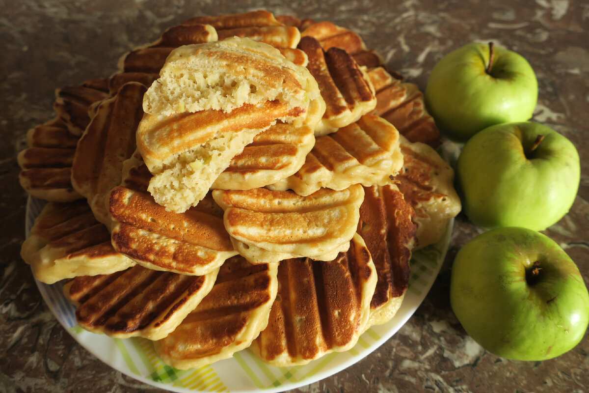 Всем привет! Сегодня приготовим пышные оладушки с яблоками. Нам понадобится: Яйцо куриное – 2 штуки, Молоко – 300 грамм, Мука – 320 грамм, Сахар – 2 столовые ложки, Соль – щепотка, Разрыхлитель – 2 чайные ложки, Яблоко – 2 больших или 4 маленьких, В емкости соединяем яйца и молоко. Отдельно смешиваем просеянную муку, соль и разрыхлитель. Добавляем сухие продукты к жидким, перемешиваем венчиком. Яблоки натираем на терке или мелко режем. Добавляем яблоки и сахар к тесту. При желании можно добавить немного корицы. Перемешиваем. Тесто готово. Сковороду разогреваем, смазываем маслом. Жарим оладьи до подрумянивания с двух сторон. Приятного аппетита и успехов в кулинарии!!!