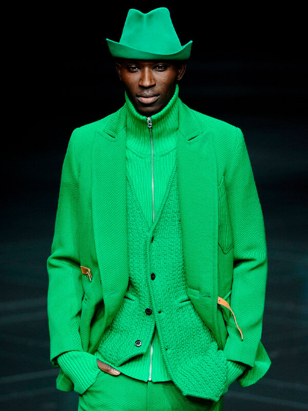 Мода начала распушать свои перья после избиения пандемией, но она появляется с меньшим количеством воздушности и грации, смирившись с легкостью, с которой культура отправила наряды в дальний ящик во время самоизоляции. Приземленный зеленый – вот что сейчас актуально. Зеленый – яркий, но домашний, и это делает его идеальным цветом этого года.