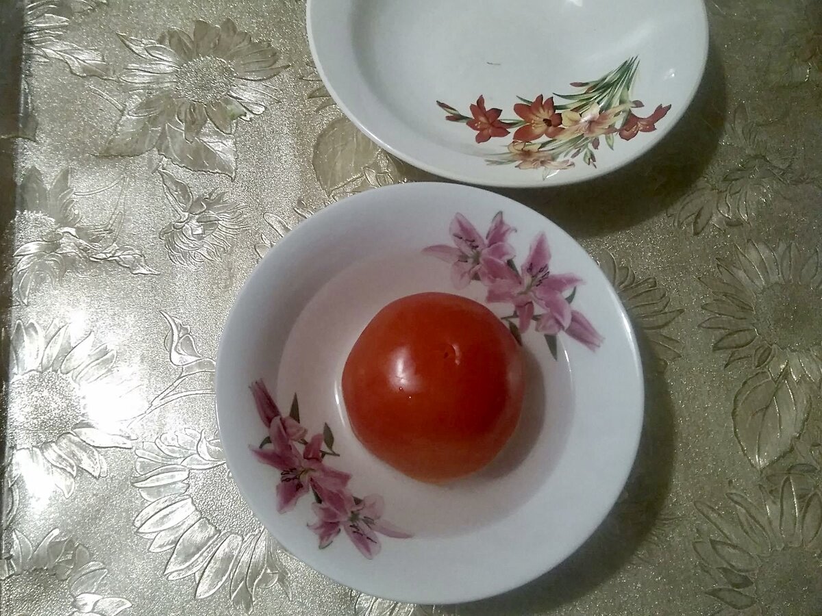 Этот рецепт для тех, кто не любит помидорные кожицы. Помидор залить кипятком на 2 минуты. Снять кожицу. После процедуры она очень легко снимается. Порезать помидор кубиками. Посолить. Можно добавить по чайной ложке уксуса и любого растительного масла (кунжутноо, льняного и т.д). Добавить зелёный лук и натёртый сыр твёрдых сортов.