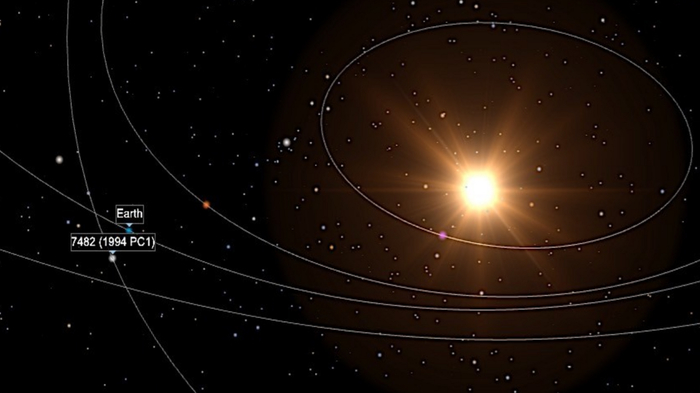 Уже завтра, в ночь с 18 на 19 января (в 21 час и 51 минуту по Гринвичу) к нашей планете подлетит потенциально опасное небесное тело - астероид (7482) 1994 PC1, длина которого достигает 1,3 километра. Но не спешите вспоминать самые ужасные картинки из фильмов о космических катастрофах - астрономы уверяют, что приближающийся к Земле небесный камень не станет угрозой для человечества, так как пролетит от нашей планеты на достаточно удаленном расстоянии в 1,93 млн. км. Это почти в 5,15 раз дальше, чем находится Луна. Астероид (7482) 1994 PC1 был открыт в обсерватории Сайдинг-Спринг в Австралии в 1994 году. Ученым удалось отследить его траекторию, на основании чего был составлен график сближений небесного тела с Землей, а происходило это уже не раз, в один из которых - в 1933 году - он подошел к нашей планете на максимально близкое расстояние в 1,1 млн. км. В следующий раз почти также близко к землянам астероид окажется в далеком 2105 года. Камень длиной в километр Огромный космический ка