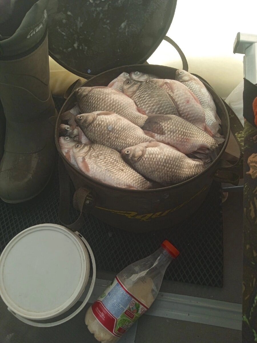 ✅ Озеро Уелги. Посетители с напарником озеро Уелги, провели на озере двое суток с четверга по субботу. Сидели левее фермера от берега примерно 2.5 километра. По прибытию на точку в районе часу дня начали искать карася на чистом месте где не было старых лунок ,нашли сразу клюнул на 4 лунке и через пару минут попался ещё один карась. Было решено установить палатки в этой точке, рыбачить сели примерно в четвёртом часу карась брал набегом, кормил манка сухари + мотыль кормовой насадка мотыль, карась брал от дна сантиметров 10-15 на крючок а со дна за всё время поймал штук 5, клёв продолжался всю ночь и до 10 утра а патом всё хуже и хуже. Искать новую точку было невозможно сильный ветер со снегом и поэтому пришлось сидеть вторую ночь на тех же лунках. За вторые сутки было поймано штук 15 карасей . Общий вес не взвешивал и сколько штук не считал но в сумку под завязку влазит больше 15 кг.
