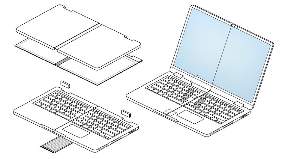 Патент на гибридный ноутбук Samsung с отсоединяемой клавиатурой, обе части которого можно сложить пополам, появился в базе данных Всемирной организации интеллектуальной собственности. Компания Samsung не перестает экспериментировать с форм-факторами раскладных устройств. Так, на выставке электроники CES 2022, прошедшей в январе, корейский бренд представил сразу несколько интересных концептов, в том числе ноутбук, состоящий лишь из сгибаемого экрана, и смартфоны, которые складываются в несколько раз. А сейчас стало известно, что Samsung подала заявку во Всемирную организацию интеллектуальной собственности на регистрацию патента, который описывает мультискладное устройство с отсоединяемым экраном. Им стал гибридный ноутбук, обе части которого можно сложить пополам. Половинка с экраном может быть использована как планшет — для этого предусмотрен сенсорный интерфейс и поддержка стилуса. А благодаря сгибаемой конструкции дисплея, такой планшет будет удобнее носить с собой. Интересно, что