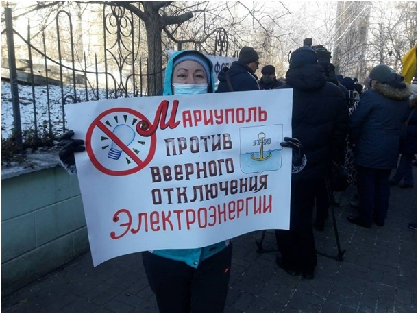 «ДТЭК – выходи!» - звучало на митингах у здания предприятия-монополиста в области электроснабжения Мариуполя. Ведь из-за массовых отключений электроэнергии в новогодние и рождественские праздники на несколько дней без света оставались тысячи людей в посёлке Новосёловка, на Левобережье и в Приморском районе. В последнем не было света семь дней подряд. Многие мариупольцы заявляют: в новогодние праздники наши дети оставались в потёмках. Людей лишили возможности праздновать. Неужели ничего нельзя было сделать? Не верим! С нас качают деньги по тарифам, а реальных услуг не предоставляют. Самым популярным плакатом в ходе протеста был: «Мариуполь против веерных отключений!». Раздавались также требования отставки мэра города Бойченко. Мариупольцы считают, что «голове» безразличны их чаяния. Представитель ДТЭК, который, наконец, появился перед протестующими, что-то блеял по поводу того, что, мол, его организация получила от «Донецкоблэнерго» уже устаревшие сети. А что, за прошедшие годы ничего