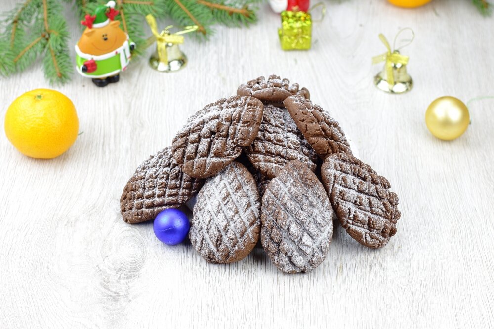 Испечем шоколадное печенье «Шишки». Это замечательный сладкий подарок к новогодним праздникам, вкусное лакомство к праздничному столу, ароматное угощение для детей. Как приготовить печенье "Шишки" Ингредиенты: