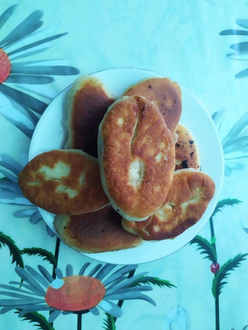 Очень вкусные жареные пирожки. Можно есть как отдельное блюдо, а можно с первым вместо хлеба. Ингредиенты: мкуи, молока, яйцо, ст л растительного масла(для теста), ст л сахара, ч. л.соли, гр дрожжей, картофеля, репчатого лука, Растительное масло для жарки Способ приготовления: Яйцо взбить с солью, сахаром и растительным маслом. Дрожжи (не сухие) добавить в тёплое молоко. Понемногу добавлять муку и замесить мягкое тесто. Накрыть его полотенцем и поставить в тёплое место. Если тесто сильно подошло, осадить его руками. Когда тесто подойдёт во второй раз, можно приступать к лепке пирожков. Для начинки: картофель очистить, отварить, потолкти. Измельчить лук и обжарить его на растительном масле до золотистого цвета. Затем в пюре добавить лук и масло, на котором он жарился, и хорошо перемешать. Вместо лука я часто использую "выжарки" (остатки сала, когда топлю смалец, я из перекручиваю через мясорубку и затем добавляю вместо лука в пюре, получается ещё вкуснее). Стол смазать растительным масл