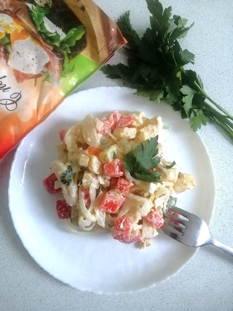 Если хочется порадовать и одновременно удивить гостей чем-то вкусным и оригинальным, стоит приготовить картофельный салат с маринованным луком. Простое, но очень вкусное и аппетитное блюдо быстро делается из доступных продуктов. Готовьте с удовольствием! Ингредиенты: картофель, яйца, лук репчатый, болгарский перец, кипячёной воды, сахара, соли, 9% уксуса, зелень Способ приготовления: Луковицу порезать полукольцами, залить кипятком на несколько секунд. Воду слить. В миску с луком налить холодную воду, добавить соль, сахар и уксус. Оставить мариноваться на несколько часов. Картошку и яйца сварить, остудить и нарезать кубиками. Добавить маринованный лук, порезанный кубиками болгарский перец и зелень. Посолить по вкусу, заправить майонезом и перемешать. Приятного аппетита! Если вам понравился мой рецепт, оставляйте свои комментарии и фотоотзывы.