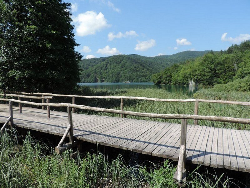 часть 2 Продолжим наш путь по тропе, вдоль Плитвицких озёр. Из за каждого поворота тропы, нас ждало что то новое. Новое озеро, водопад или ручей. Иногда тропа превращалась в каменные ступеньки, которые приводили в пещеру. Иногда пещера уходила под воду. Тропа то опускалась к воде, то снова поднималась в гору. Мы начали уже уставать, но красота этих видов, двигала нас дальше. Хотелось ещё увидеть что то новенькое. Иногда встречались предупреждающие знаки, что дальше дорога закрыта. В период Югославской войны, в этих лесах были заложены мины, которые до сих пор находят. Наконец мы дошли до середины нашего пути. До озера через который нам предстояло переплыть на катере. В озере плавают утки, в чистейшей воде водятся рыба. Рыбы много, и они привыкли к человеку, кормятся с руки. При покупке билета, нам добавочно продали билет на катер. Оказывается, наша тропа заканчивалась на этой стороне самого большого озера. Дальше переправляемся на другую сторону, и возвращаемся назад по горам, над