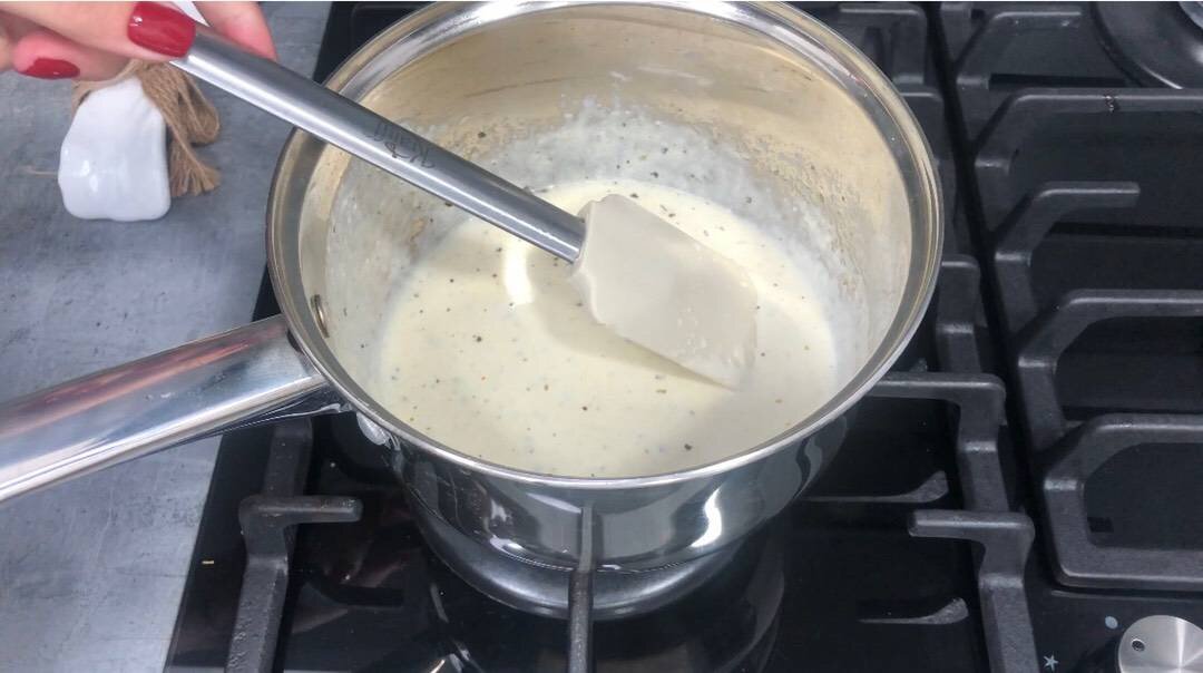 #меню Ингредиенты: сливочного масла, сливок, чеснока, сливочного сыра, прованских трав и соль Способ приготовления: На растопленном сливочном масле обжариваем мелко нарезанный чеснок. Добавляем сливки и специи. Готовим 2-3 минуты на медленном огне. Добавляем порезанный сливочный сыр и готовим до загустения (примерно 5-7 минут)