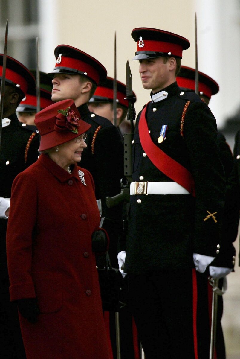 Бабуля конечно же не простая, как и курсант :) Снимок был сделан 15 декабря 2006 года и стал самым любимым для принца Уильяма. На нем королева проходит мимо парадного строя курсантов старейшей военной академии "Сэндхерст", в которой учился Уинстон Черчилль, и другой внук Елизаветы II - Гарри. #фотоистория #Англия #елизавета 2 #королева #королевская семья великобритании #уильям #гарри #принц #юмор
