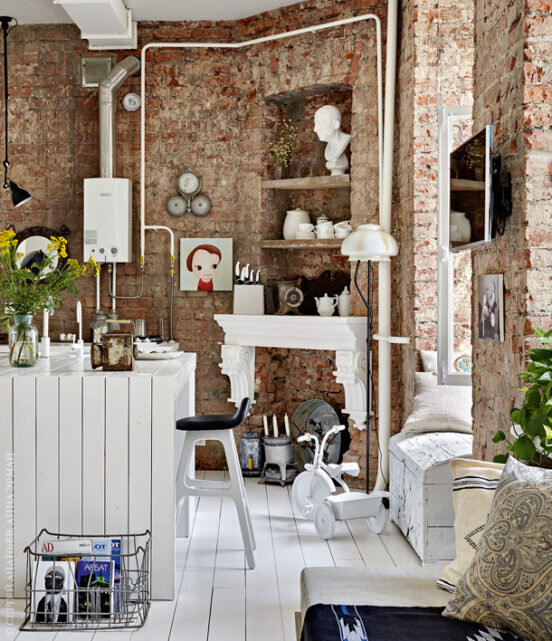 Не для кого не секрет что стильным декором могут быть старинные предметы быта. Был период, когда механизмы или детали размещали только в интерьерах лофт, а деревенскую утварь на даче. Сейчас же ими дополняют современные стильные интерьеры. У архитектора-дизайнера Анны Эрман есть просто потрясающие идеи. Среди наших товаров найдутся не только винтажные промышленные лампы. В качестве стильной инсталляции можно использовать модель гидроусителя руля трактора и бра из детали «жигулей». Старинные инструменты хороши сами по себе. Посмотрите какие резные детали, а ведь это обычный столярный инструмент. Хорошо справляются с практической и с декоративной ролью рубанки, терки для оштукатуривания стен. Из них получаются стильные ручки для дверей, вешалки, рейлинги и даже светильники. В качестве доски для записок и памяток можно использовать старинный предметы быта, например волокуши или стиральные доски. Старинный ящик для транспортировки фруктов обойдется Вам не дорожи ящиков из Икея, но выгляд