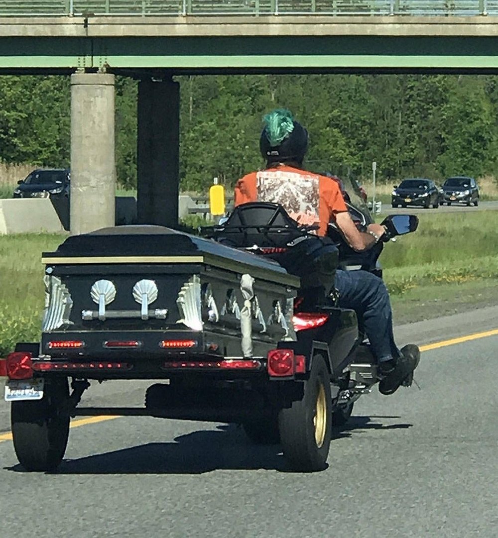 1. «Тяжёлый гроб несли к ограде…крутого парня хоронили, смеялись и шутили…» Ну, в общем, вы поняли, кто есть кто на изображении. 2. Что значит «тюнинг по-русски»? Это когда попал в ДТП, разбил тачку, а на оригинальные запчасти денег нет, вот и приходится колхозить что попало. 3. Тот самый неудобный момент, когда твою иномарку представительского класса переехал Белаз, и тебе приходится в таком виде ехать по городу. 4. Как сделать машину ещё быстрее? Просто заклеить скотчем любые щели для повышения аэродинамических свойств. Вот, собственно, чем и воспользовался владелец Мазды… 5. Типичная ситуация, когда на светофоре к тебе подходит какой-то другой водитель и спрашивает как проехать. На картинке то, каким ты его видишь. 6. Если зомби-апокалипсис уже наступил, то пора срочно перекрывать дороги и границы, он может распространиться из-за океана к нам. 7. Хоть я помогать не люблю, но вот тот самый момент, когда так и хочется выйти и предложить свои услуги. Впрочем, посмотрю-ка я с води