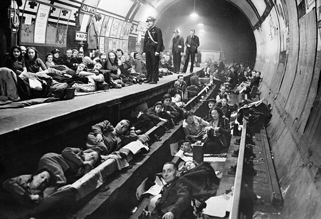 Во время Второй мировой войны лондонцы всех социальных статусов искали укрытие на подземных станциях, спасаясь от немецких бомбардировщиков. «Лондонский блиц» — кампания стратегических бомбардировок Лондона и других городов Англии авиацией гитлеровской Германии. «Блиц» продолжался с сентября 1940 года по май 1941 года, бомбардировкам подвергались населенные пункты, фабрики и верфи. В результате бомбардировок были убиты более 40 000 мирных жителей, половина из них в Лондоне, где было полностью разрушено или повреждено более миллиона домов. Самыми важными общественными убежищами были станции лондонского метро. Хотя многие гражданские использовали их в качестве убежища во время Первой мировой войны, в 1939 году власти отказались разрешить использовать станции в качестве укрытий, чтобы не мешать пригородным перевозкам и передвижению войск, а также из-за опасений, что оккупанты могут отказаться уходить. Управлению метрополитена было приказано запирать входы на станции во время налетов, но
