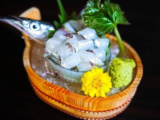 Чтобы совсем ни у кого не было сомнения, каждая глава книги начинается с полноценного рецепта того или иного блюда. Так что тут можно цитировать просто всю книгу целиком. Но читать рецепты не так интересно, куда занимательней почитать отрывок про посещение ресторана. В данном случае японского. Очень колоритно написано. Там ещё много есть такого, и я, пожалуй, к этому произведению ещё вернусь, но пока почитайте про сашими из рыбки сайори. Настоящая японская классика. Оно того сто