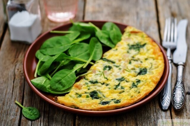 3. Нарезанный лук размягчить в масле, добавить шпинат и обжарить.