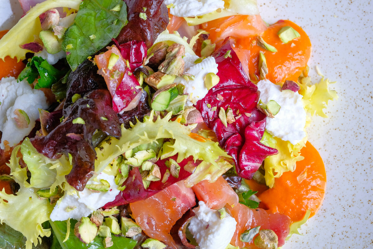 Салат с адыгейским сыром и малосольной семгой