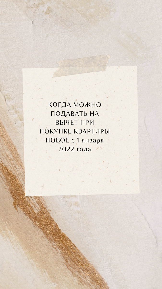 КОГДА МОЖНО ПОДАВАТЬ НА НАЛОГОВЫЙ ВЫЧЕТ ПРИ ПОКУПКЕ КВАРТИРЫ. НОВОЕ С 1 ЯНВАРЯ 2022 ГОДА