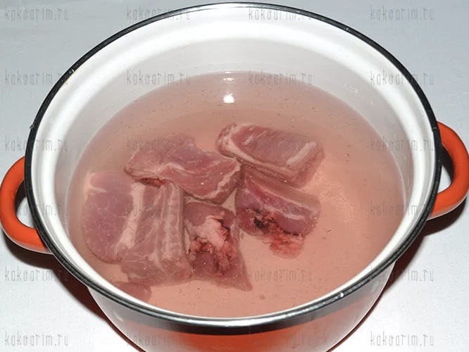 ИНГРЕДИЕНТЫ свиные ребрышки400-500 гвода3-4 лкартофель3-4 шткапуста200 гзелень петрушки и укропа1 пучоксахар1 ч.л. (по вкусу и не обязательно)сольпо вкусусвежемолотый перецпо вкусусало (старое)1 маленький ломтикчеснок1 зубчикрастительное масло для жаркисметана (для подачи)Для свекольной заправки:свекла1 штлуковица1 штморковь1 штпомидоры2 шт (или томаты в собственном соку)болгарский перец (по желанию)1 шттоматный соус (или кетчуп)2 ст.л. Пошаговый рецепт с фото Моем ребрышки, кладем в кастрюлю и заливаем холодной водой. Доводим до кипения. Снимаем пену. Уменьшаем огонь и варим при слабом кипении до готовности мяса. Я варю 2 часа, люблю, когда мясо очень мягкое и распадается на волокна. Мясо готово. Достаем ребрышки из бульона. И нарезаем. Можно снять мясо с ребрышек или оставить на косточке – это как вы любите. Возвращаем мясо в бульон. Картофель нарезаем маленькими кубиками. Капусту тонко шинкуем. Кладем в бульон картофель и капусту. Варим при слабом кипении около 15-20 минут. Готовим